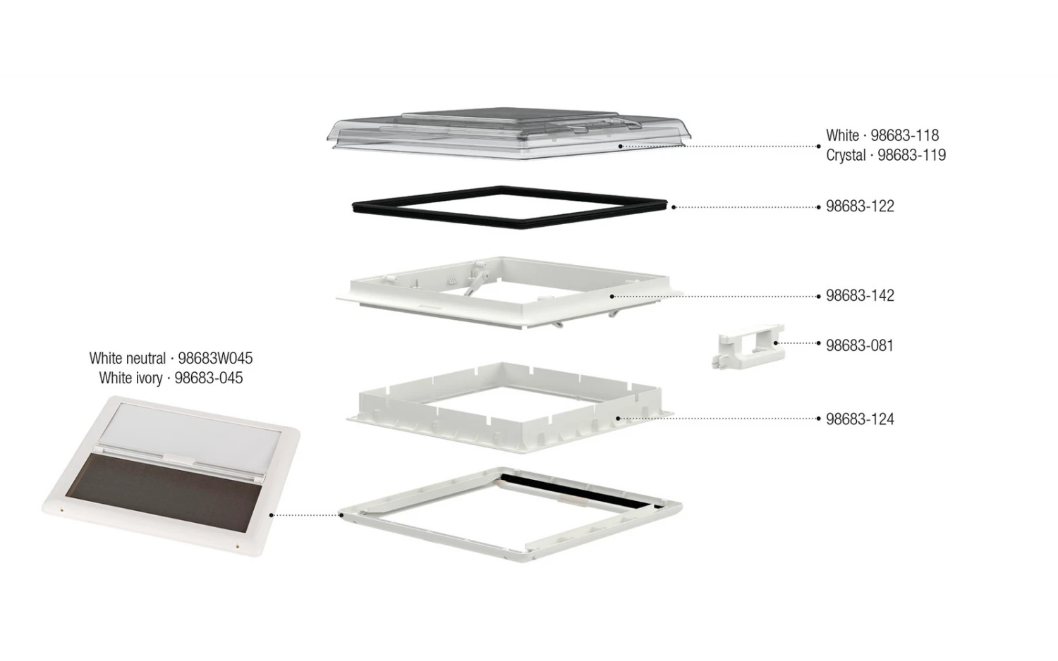 Außenrahmen für Fiamma Vent 50 inklusive Aussteller links und rechts