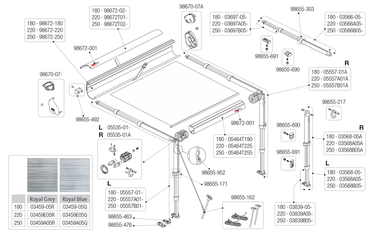 Fiamma Stützfußstange innen für Fiamma Caravanstore 225 / F35 220 (2005 / 2007).