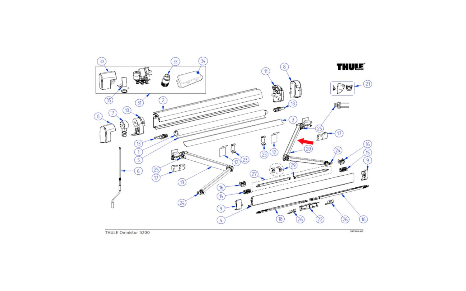 Thule Gelenkarm (rechts) für Markisenlänge 2,3m passend zu Omnistor 5200
